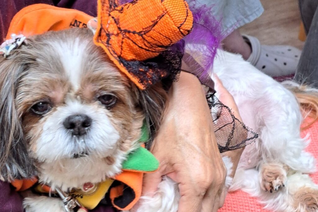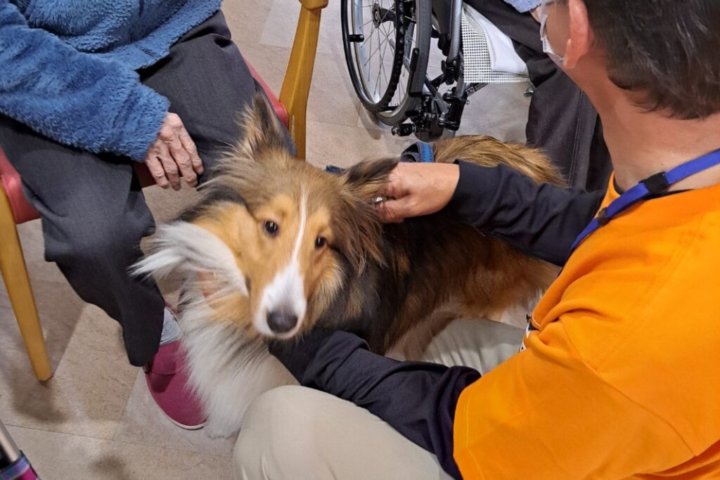 施設訪問の様子です。多くの利用者様がワンちゃんに癒やされています。